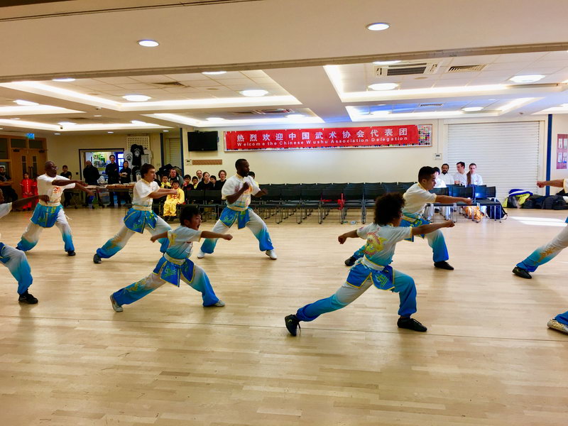 12月4日武术团全体由北京出访前往伦敦。12月5日全团在肯辛顿宫花园和特拉法加广场进行了公开展示活动,向公众宣传推广中国武术,引来当地民众驻足观看,并纷纷与我方运动员合影留念。运动员们克服了旅途劳顿、休息不足等不利因素,发扬了不怕苦、不怕累的精神,圆满地完成了展示任务,同时展现了中国武术运动员昂扬向上、朝气蓬勃的精神面貌和武术精、气、神的传统特色。
